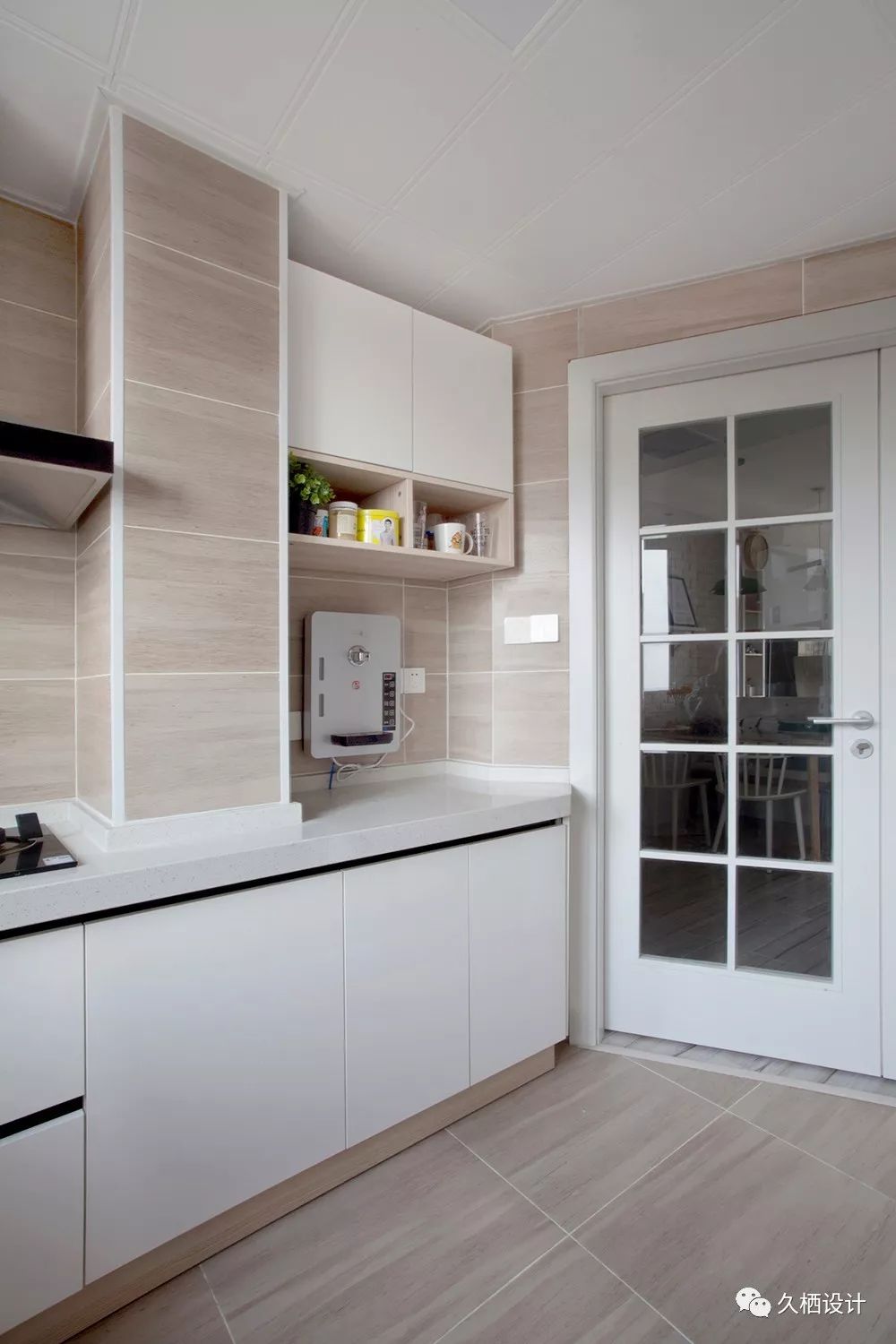 厨房设计强调自然光,清晰线条以及典雅的色彩运用,达到追求传统与现代质感之间的完美平衡功能布置安排合理,洗切煮一气呵成,白色的柜板与玻璃窗带来良好的光线效果