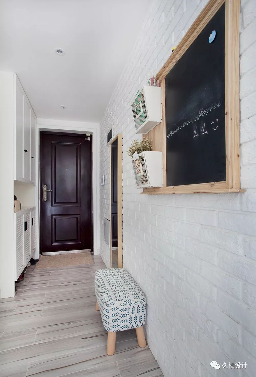 原木与白色基调的北欧风格带来的舒适感觉,是其他材质无法替代的挂在墙上的手写黑板与挂篮小巧而轻便靠墙的木框穿衣镜,与布艺换鞋凳也很有特色,整个空间都是满满的休闲,温馨的味道