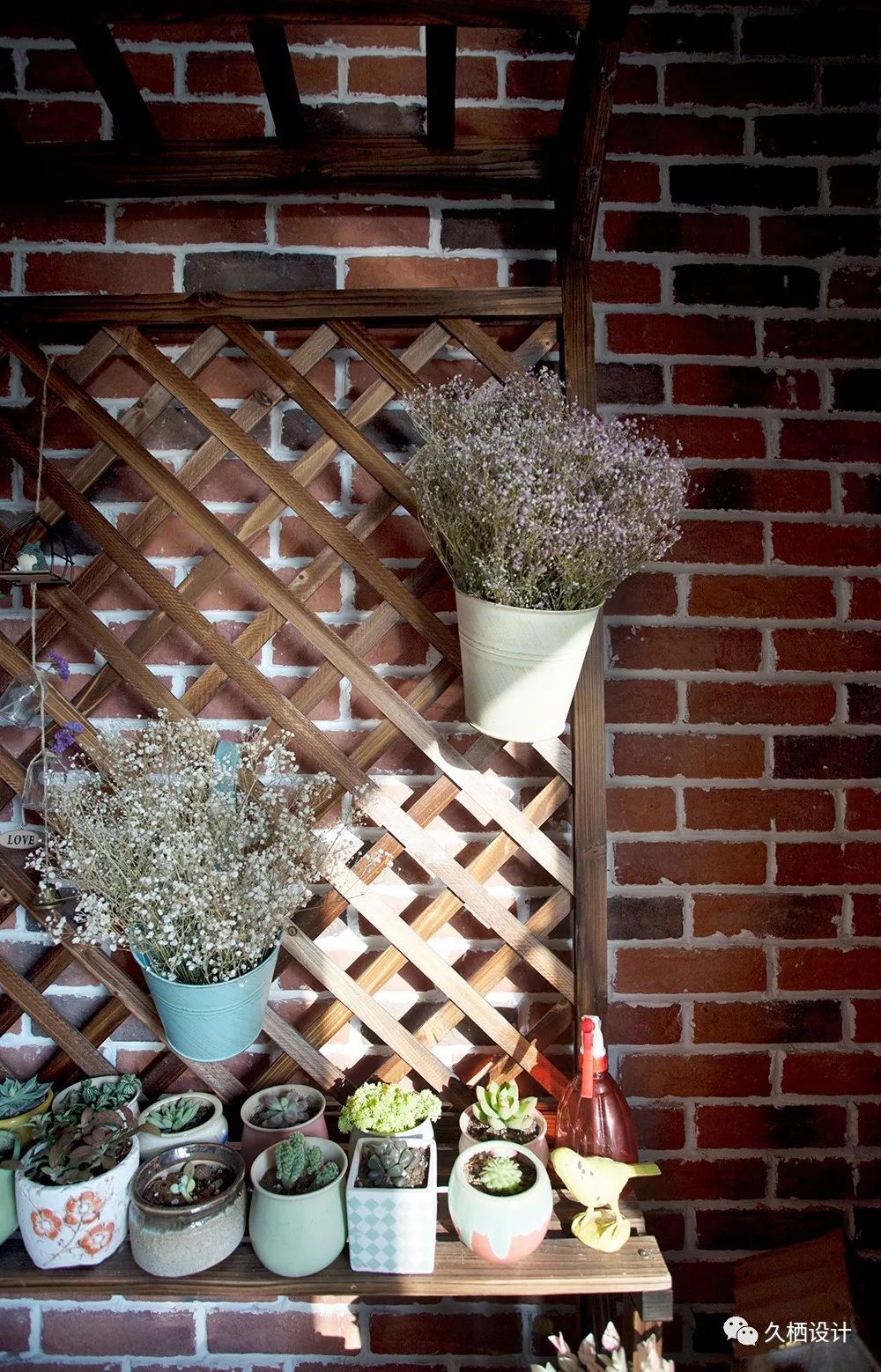 由防腐木材料定制的花架上摆满了秀色可餐的多肉植物,让高雅与与柔和在这里不断蔓延,简单又美好