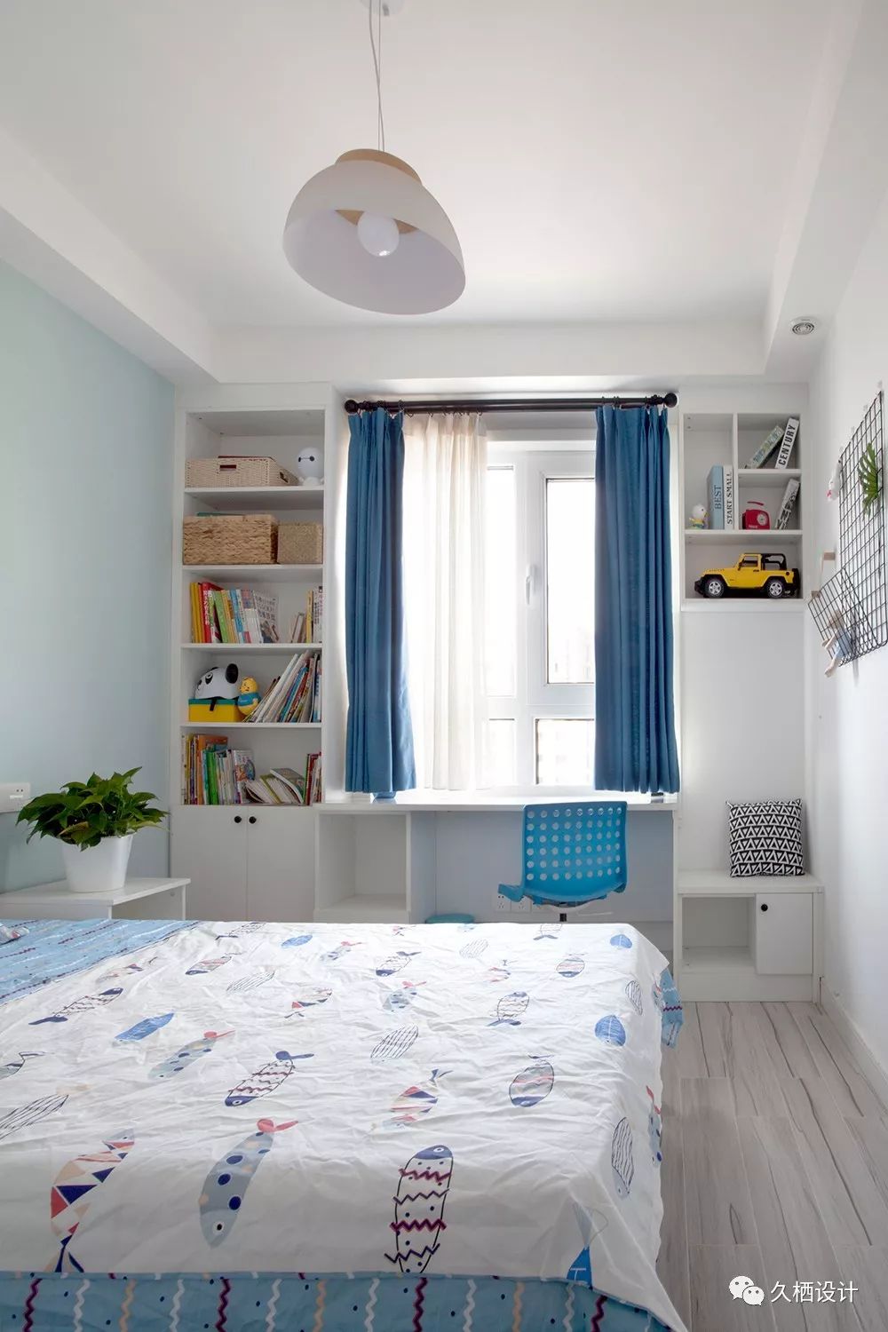 儿童房的飘窗设计,具有储物收纳功能对窗而坐的书桌可以留给宝宝长大后使用,亮堂的光线可以保护宝宝的眼睛