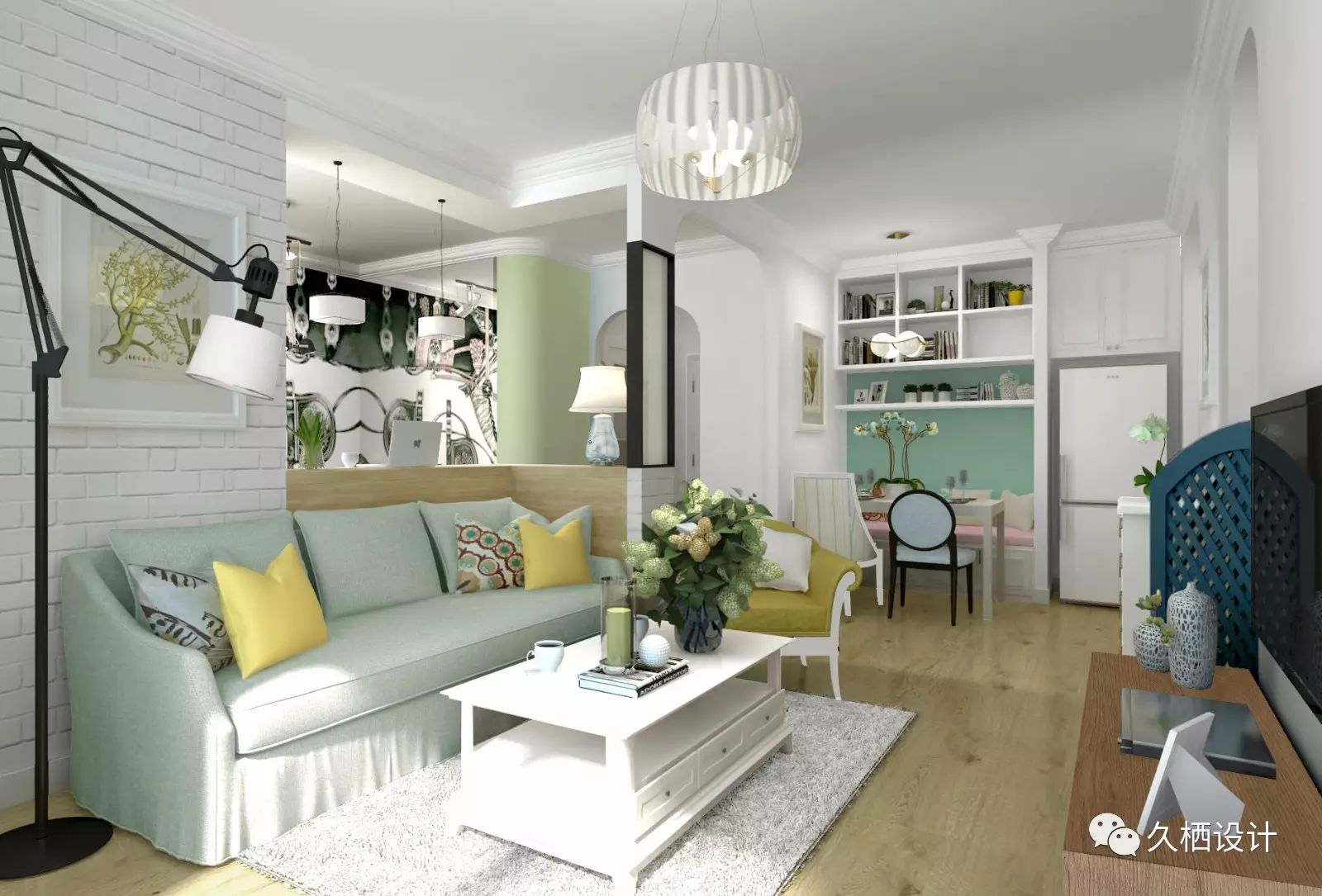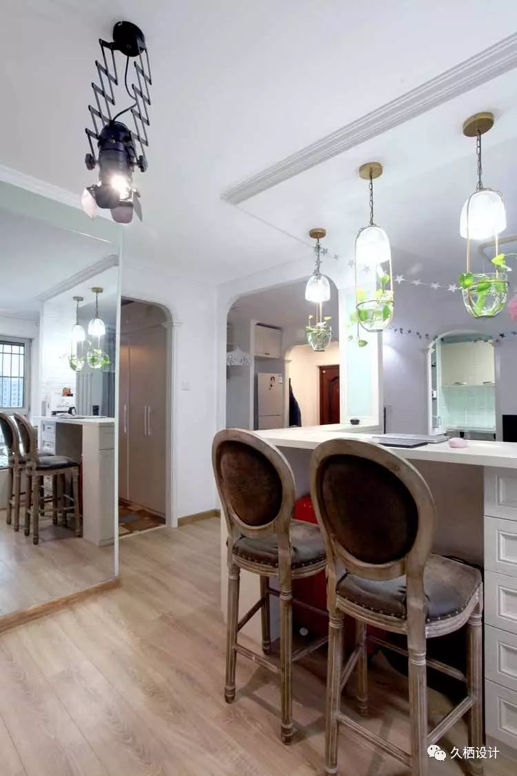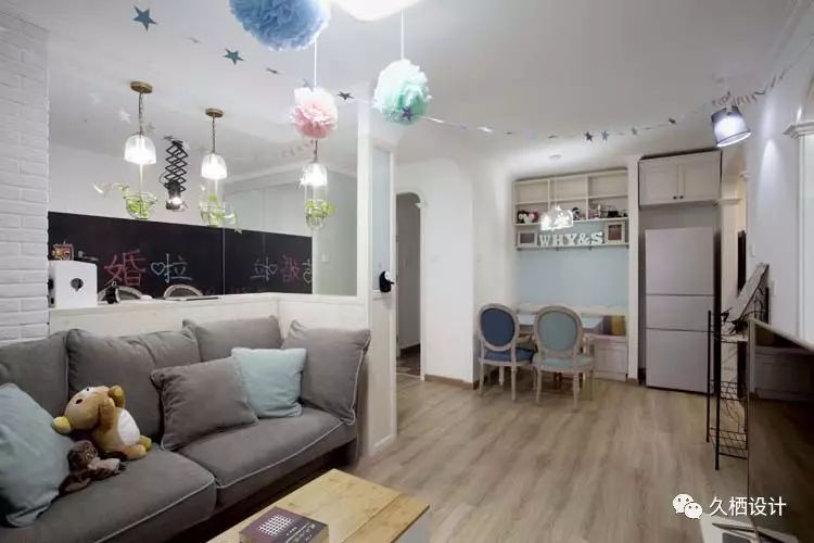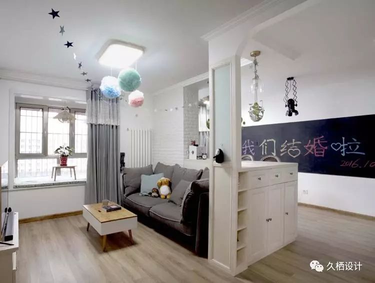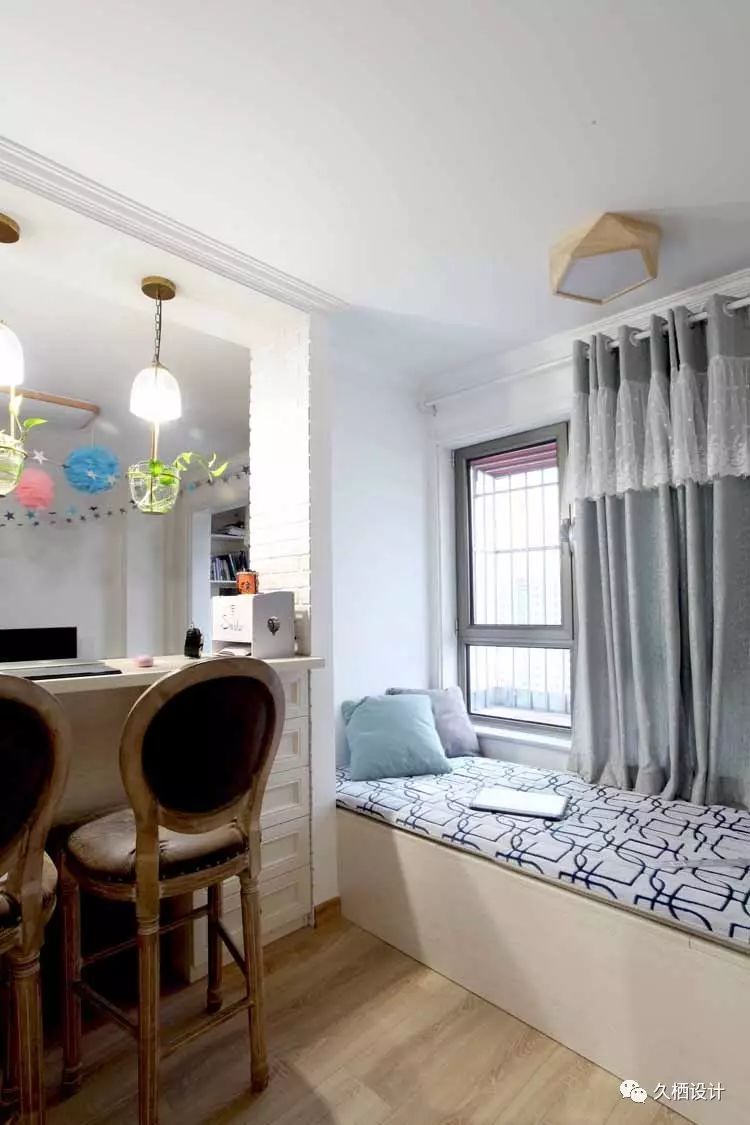 业主是一对年轻夫妻,打算利用原来的老房改造近十年前的装修风格,打造属于自己的两人世界,由于需求量较大,设计师在格局上重做调整。利用原来的一间卧室打通与客厅的联系,以似分隔未分离的方式,将鲜活的临近主题色延续在每一个空间当中,朴实质感的砖片造型墙与木质吧台相结合,围绕在舒适的沙发旁,不禁让人驻足停留。室外的清心空气随风穿堂过室,不受约束的贯穿空间中每一道宽敞的过道,追溯着人们心中对风雅玩趣的生活向往——来源久栖设计TopDesign︱旧屋换新话说这样的二人世界就是要把生活整理成自己喜欢的模样