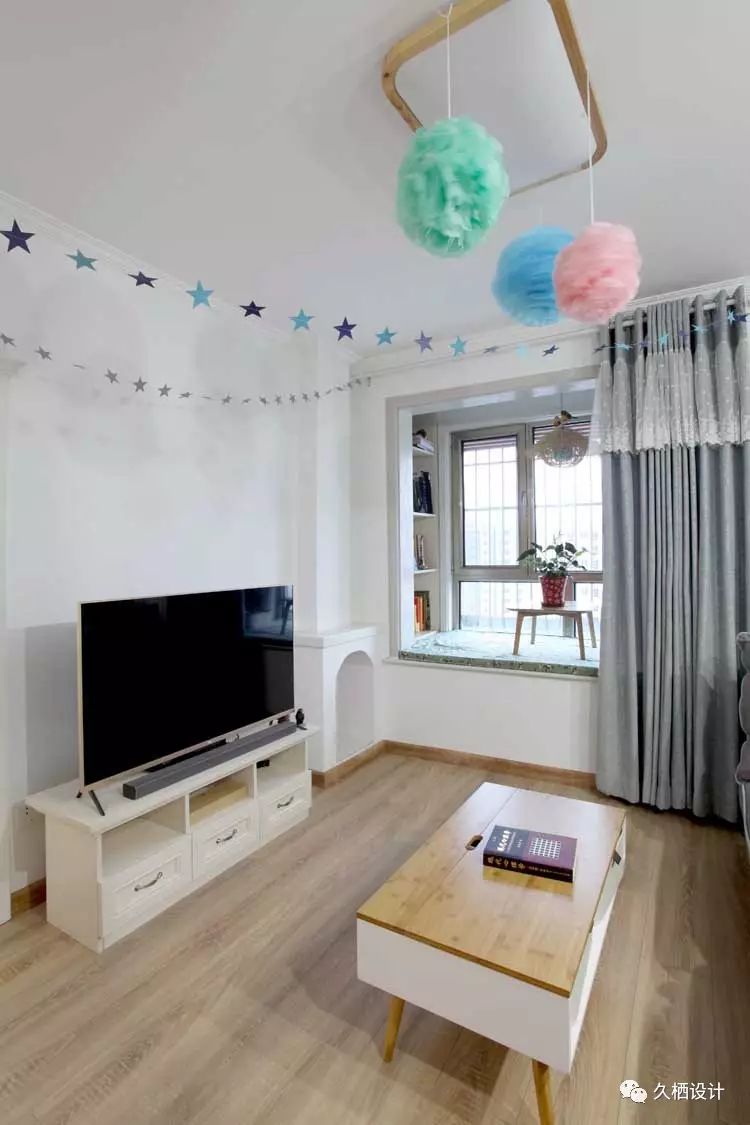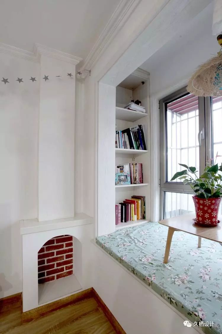 ·电视墙局部做装饰,小壁炉的设计为整个环境营造文艺小清新的效果