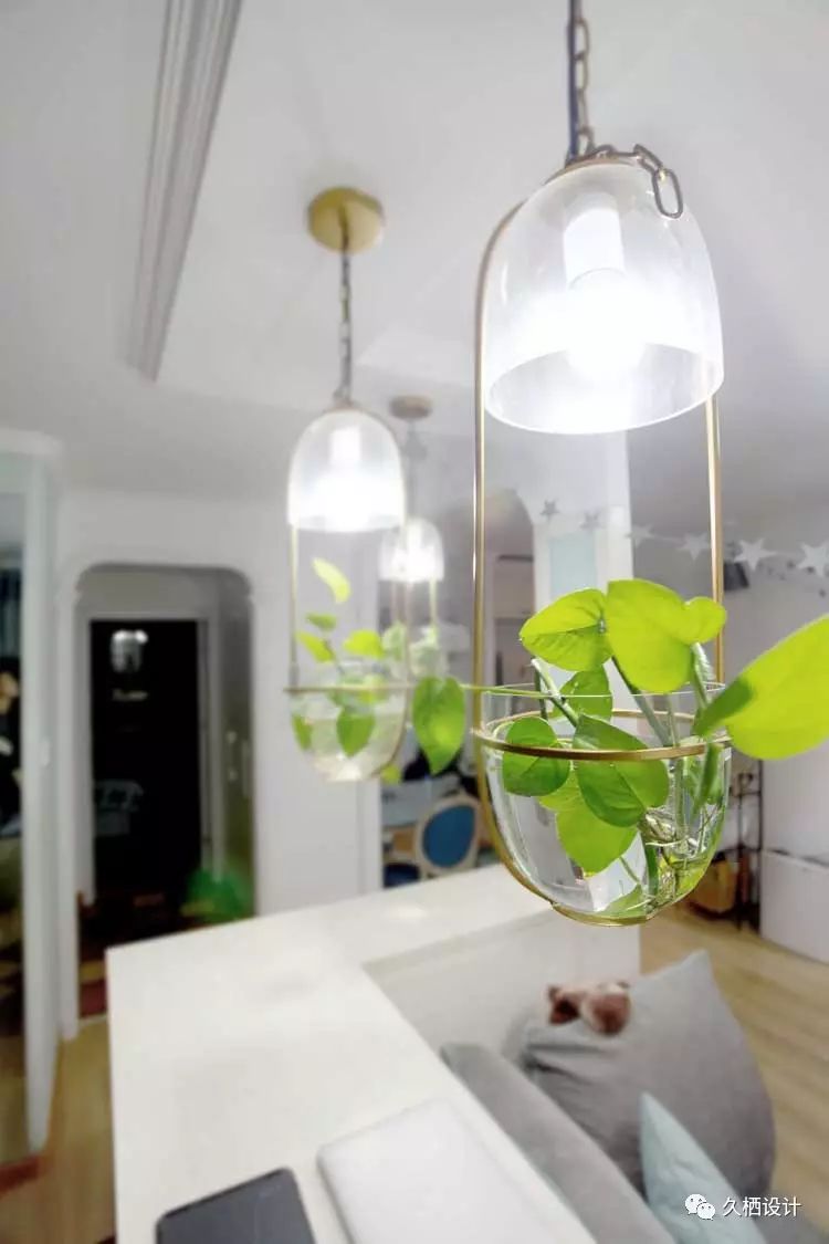 书房的吊灯,创意无限,绿植在灯光的照耀下,更是显现出自然的柔美