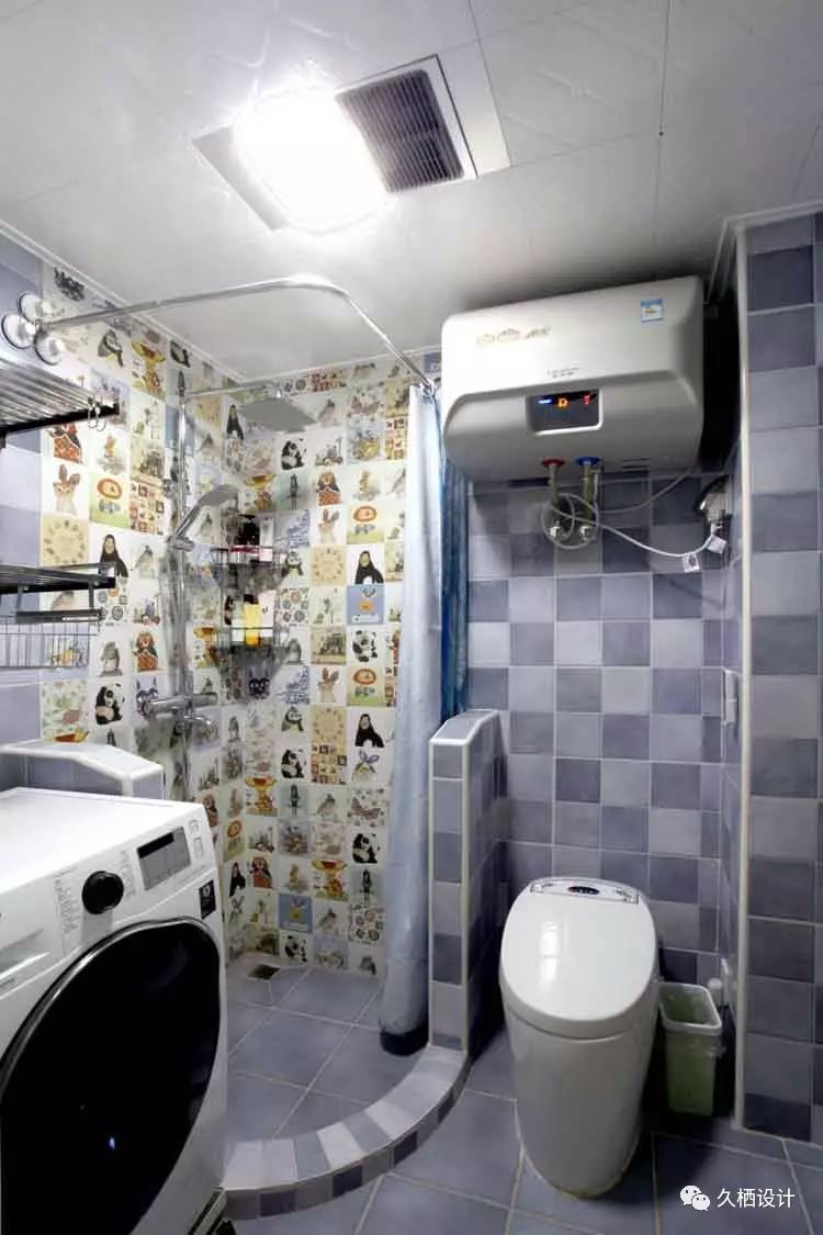 卫生间的整体色调和整体相统一,充满童趣的淋浴区,让主人沐浴的时候也能感受家的轻松