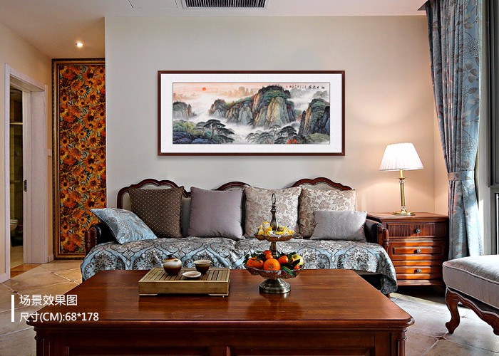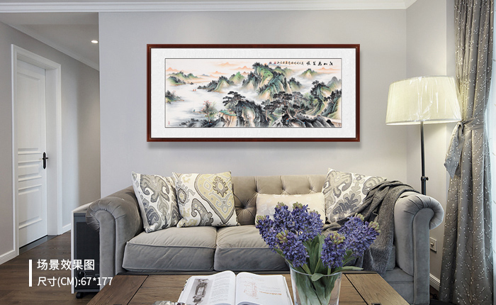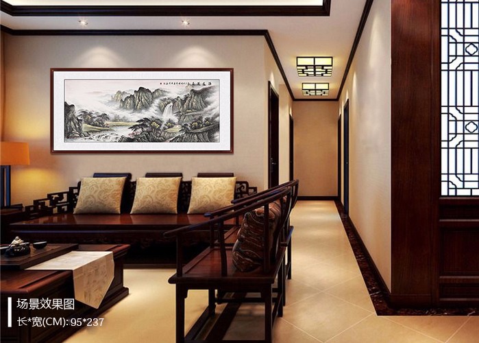 结语:装饰画中多以山水为题材,表现的是人与自然相互融合的和谐景象。从风水上来看,如果在客厅沙发背景墙上装饰山水画,那就能给客厅带来祥和之气,可以给整个家庭带来安宁与幸福。