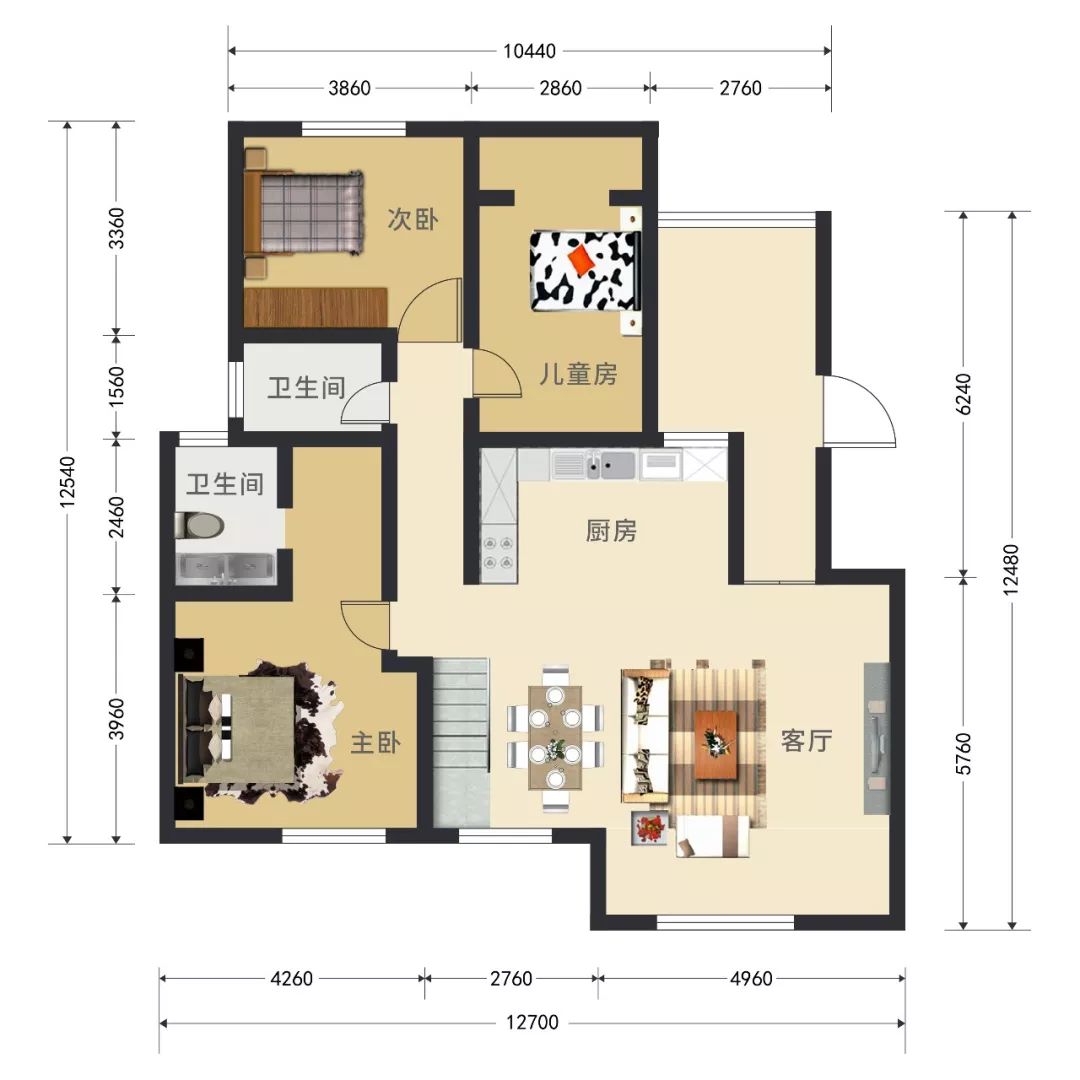 二层户型图三室一厅,一厨两卫,xidylee 家看起来是很标准的户型,还有女孩子们都喜欢斜顶