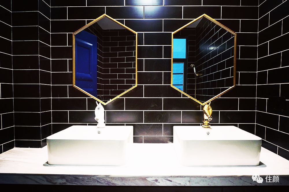 菱形镜打破空间的横平竖直,一金一银独角兽造型的龙头,嗯,童话里的公主和王子的幸福生活,一定都是这样的……