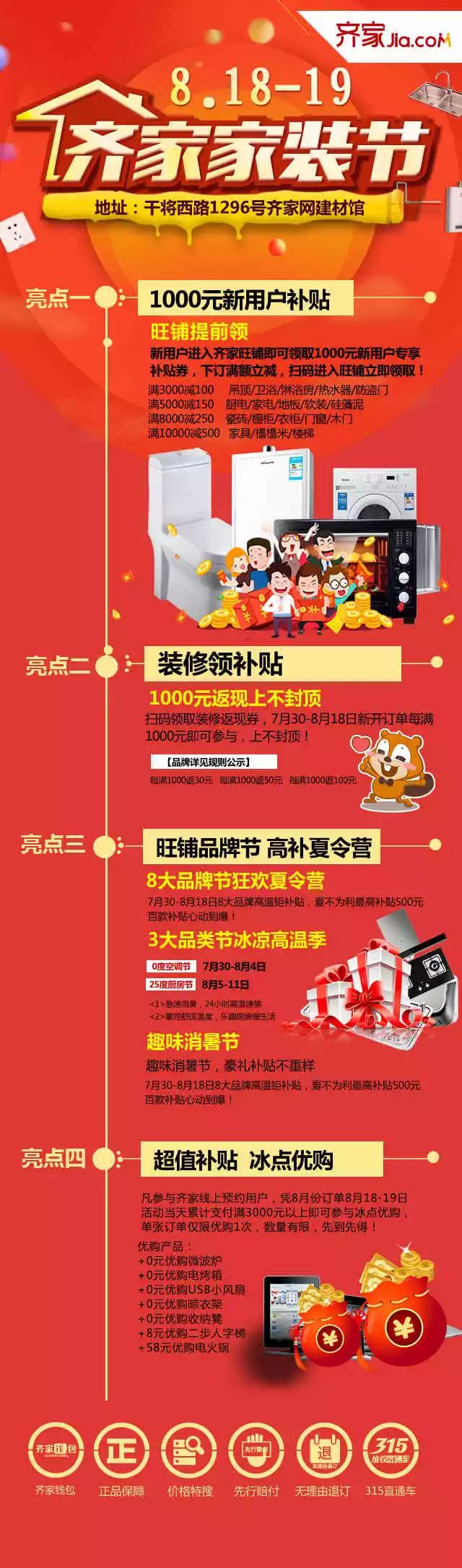 所有中奖用户8月18-19日活动当天凭齐家网品牌8月份订单均可兑换相应奖品