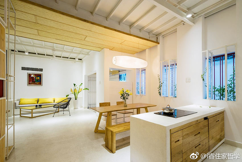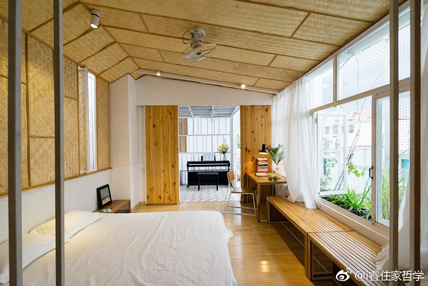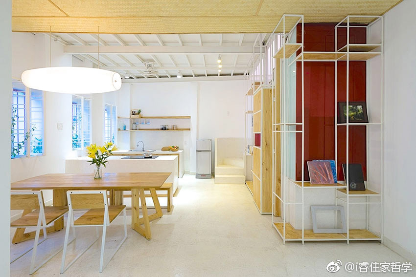 我喜欢这样的家 越南住宅的一大特色为绿意共生,通常会在建筑立面及室内空间「夹入」植物带,形成室内外的过渡区域。当地建筑团队 G+architects 除了在此案运用大量盆景植栽呼应东南亚的热带意象,更导入「竹编板」象征越南文化,呈现就地取材与环保低碳排理念。此栋三层楼透天厝每层约48平米,一楼为开放式客餐厅,全家人可在此惬意用餐、闲聊;二楼以上则为卧房区,但三楼主卧更搭配绿意繁盛的露台,让自然气息缓缓延伸至室内空间。除此之外,采光也是此案强调的设计主轴,建筑师 Doan Bang Giang 希望整体居家环境都有充沛光照,因此在每层楼皆有许多开窗设计,除了保持住宅通风干爽,同时也让屋主感受到满满的朝气与活力!
