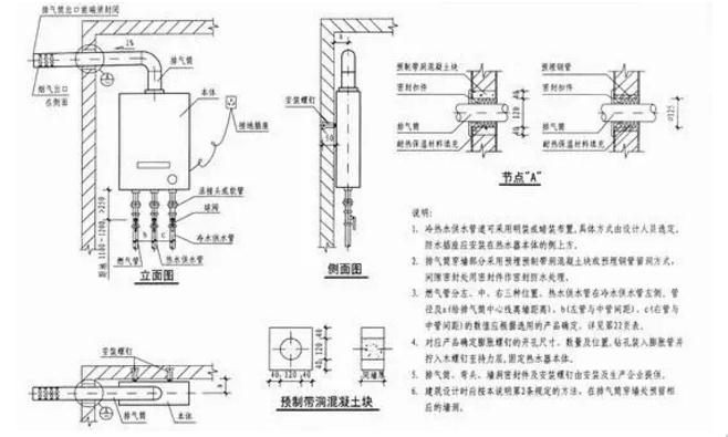 排气管安装也是同等重要的,强制排气式和平衡强排式燃气热水器必须安装烟管,并确保废气完全排出室外