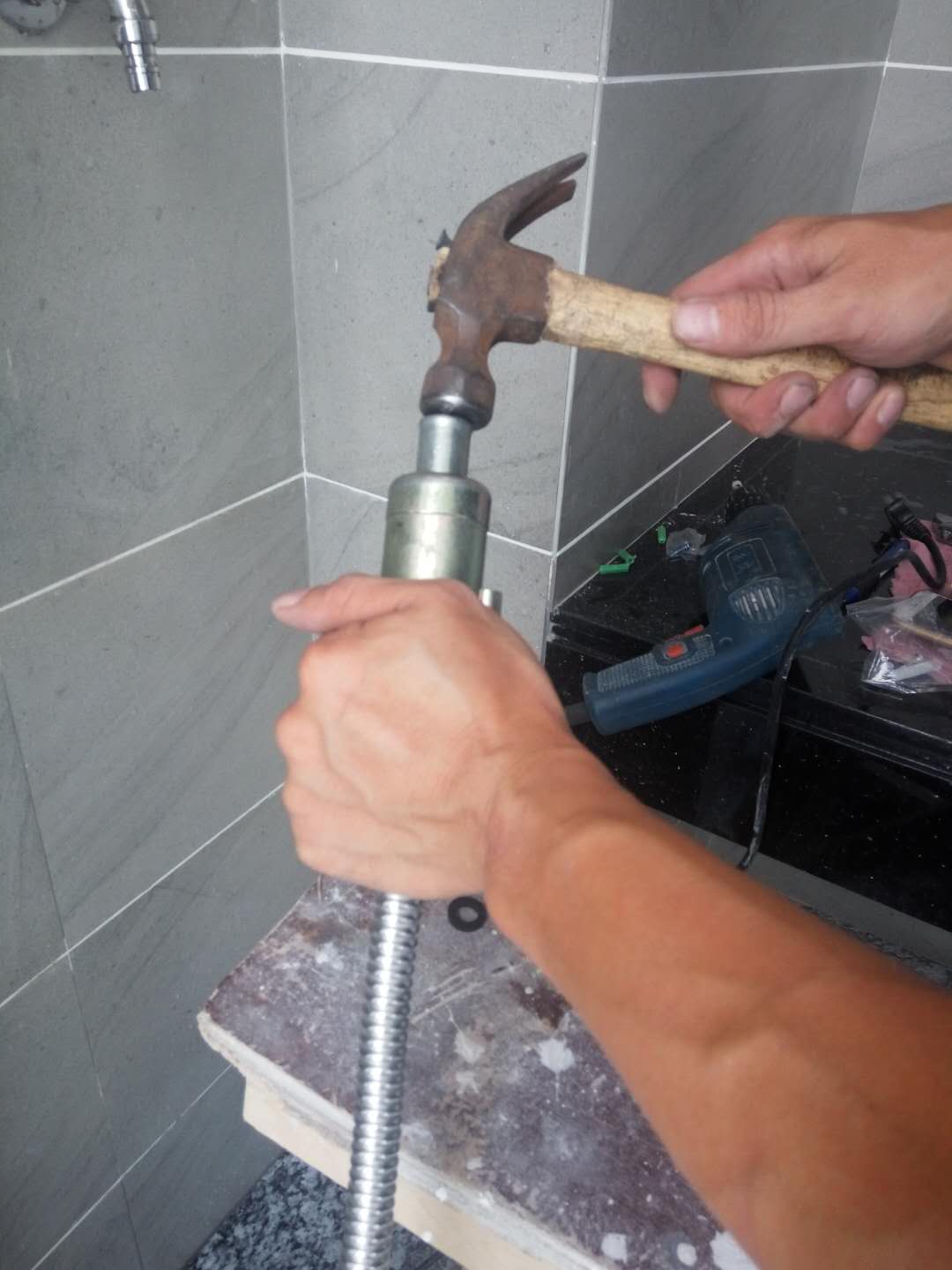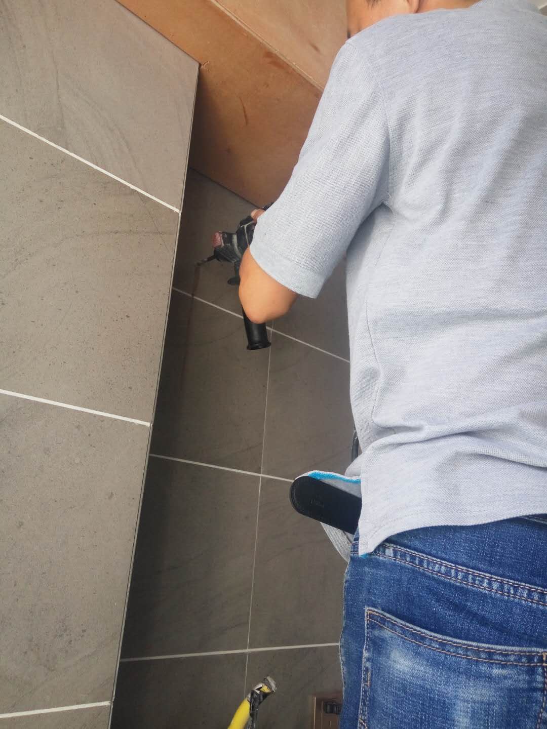 这个位置很合理及安全,但师傅也要先进行测量,根据测量的数据才在墙上打安装眼,不能打到暗藏的水管,电线和燃气管下面就开始开工了,在瓷砖上打眼也是有技巧的,要先用细钻头磨一个小眼固定打眼位置或用水钻打一小孔,然后用粗的钻头用慢档慢慢把瓷砖磨透,再用冲击档往深处打眼,这样瓷砖才不会打裂