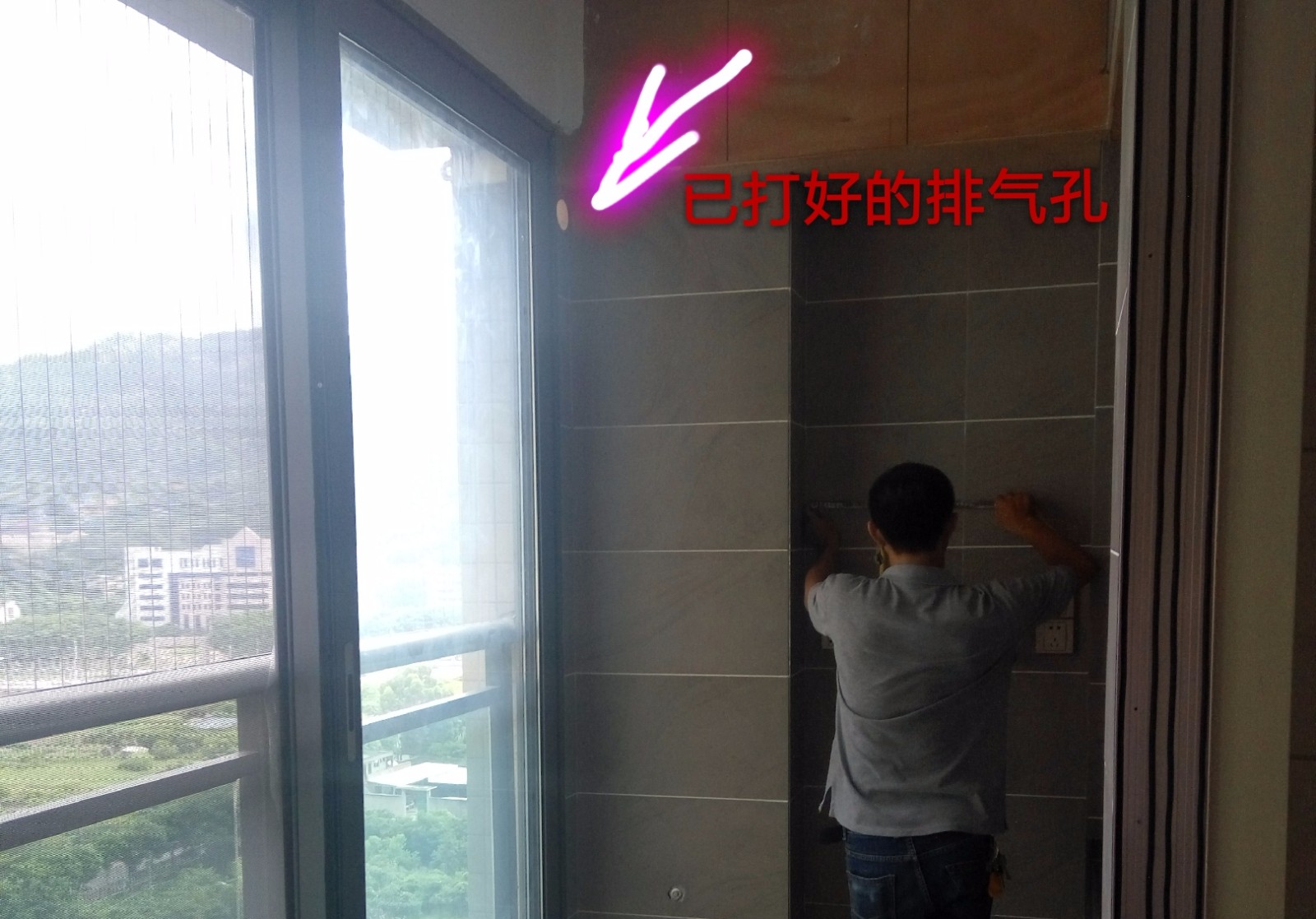 今天能率粤东代理华博电器为业主安装的热水器位置在生活阳台,下图是师傅在测量安装位置