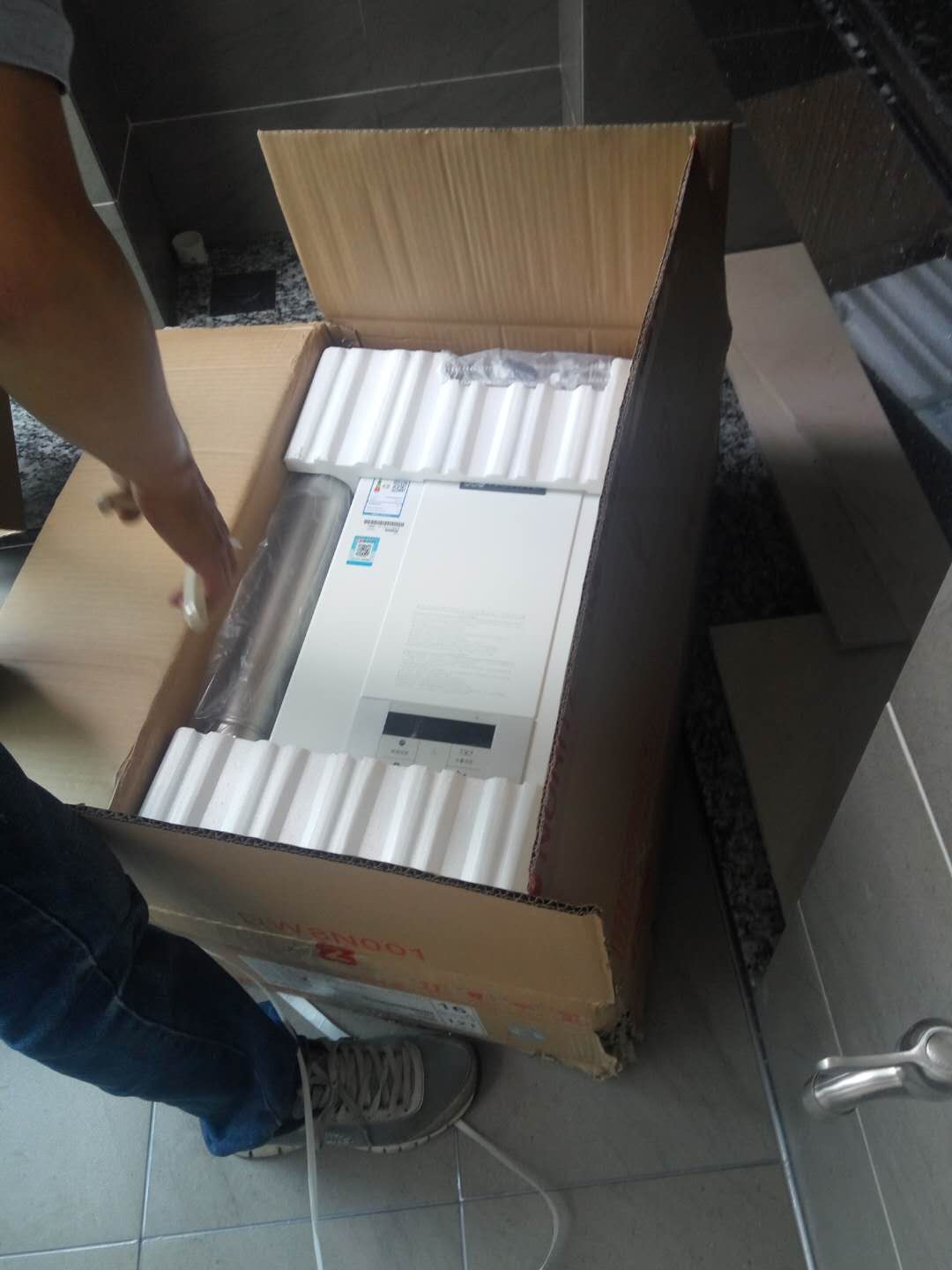 这次能率粤东代理华博电器为业主家安装的是能率GQ-16D2AFE这个型号的强排恒温燃气热水器,下三张图是开箱时的情况.