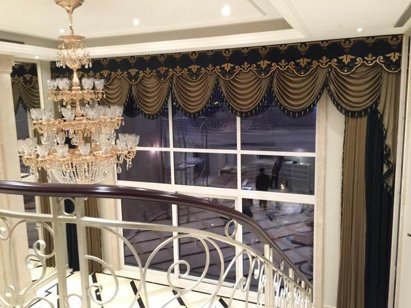 高窗窗帘制作过程注意以下几点:轨道可采用升降开合电动轨道,这样日常开合和以后清洗维护非常方便。布和纱最好采用定宽面料,坚拼,效果好!最后就是最重要的色彩搭配,与硬装和家具的风格色彩谐调。色彩决定气质,款式决定风格。
