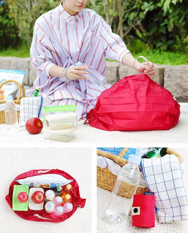 这个便携包的名字叫“Shupatto”,好玩的是,它的这个名字来自折叠时,发出的“咻~啪!”的声音演变来。