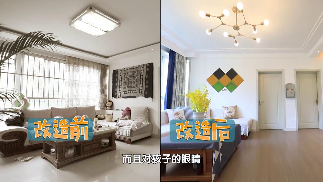 改造前,一家人的电视放置在屋子的北侧,正对着L型沙发的短边,短侧沙发仅仅只有0.8米长,坐两个人就已经满满当当,难以满足一家六口人一起看电视的需求。改造后,设计师将电视墙更换了方位,长侧的沙发足足有2.4米,一家人可以其乐融融的一起享受休闲时光了。设计师没有选择传统的电视柜,而是把电视 ...全文