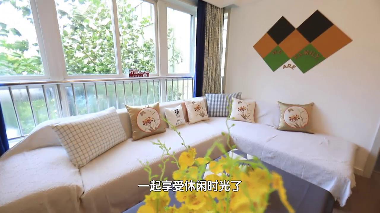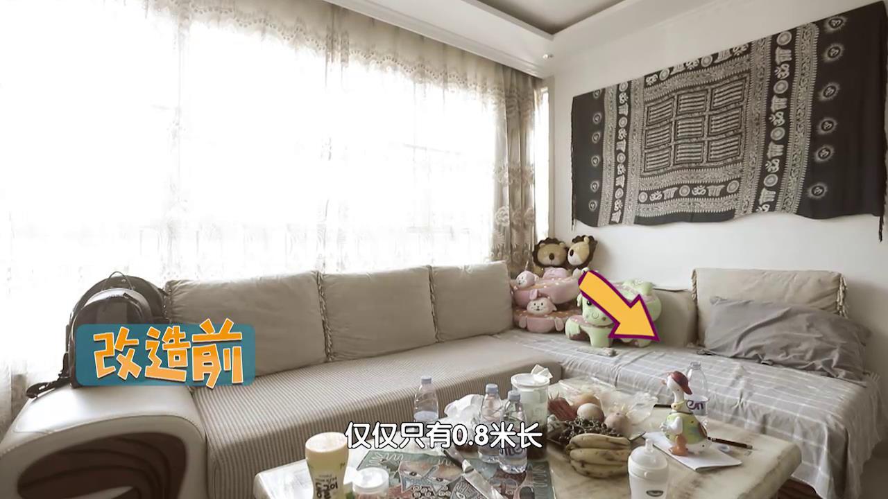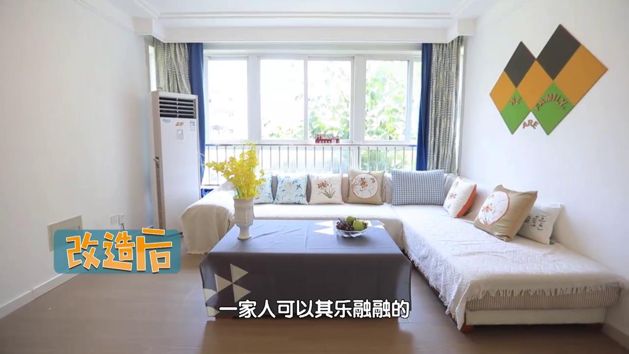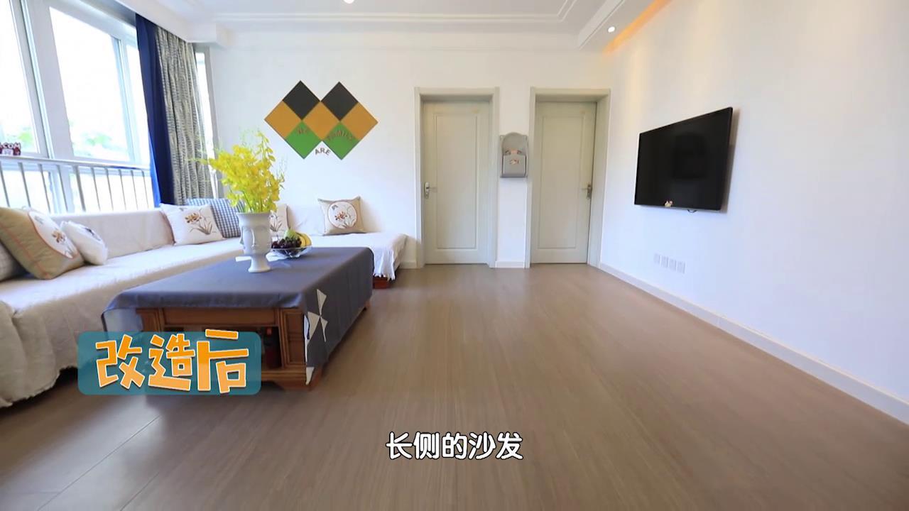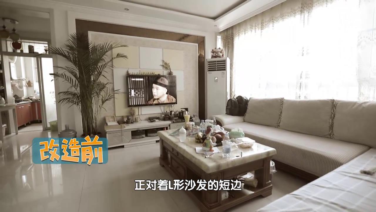 改造前,一家人的电视放置在屋子的北侧,正对着L型沙发的短边,...