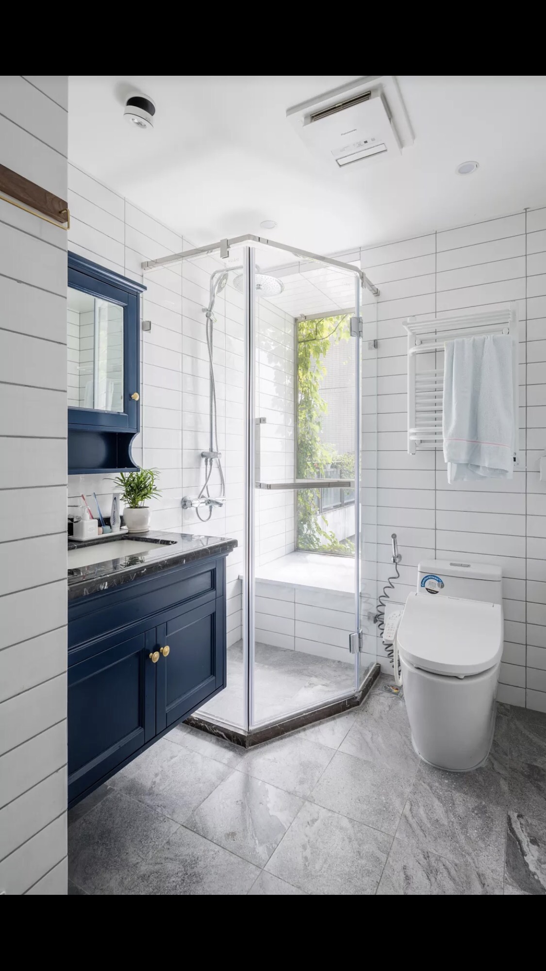 四四方方最好搞了 你看感觉,喜欢浴缸的可以靠边放一个,然后马桶浴室柜排列一下 不喜欢浴缸的就做个淋浴房