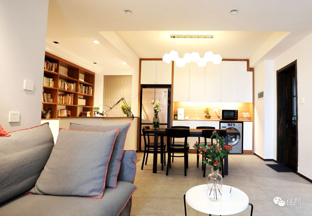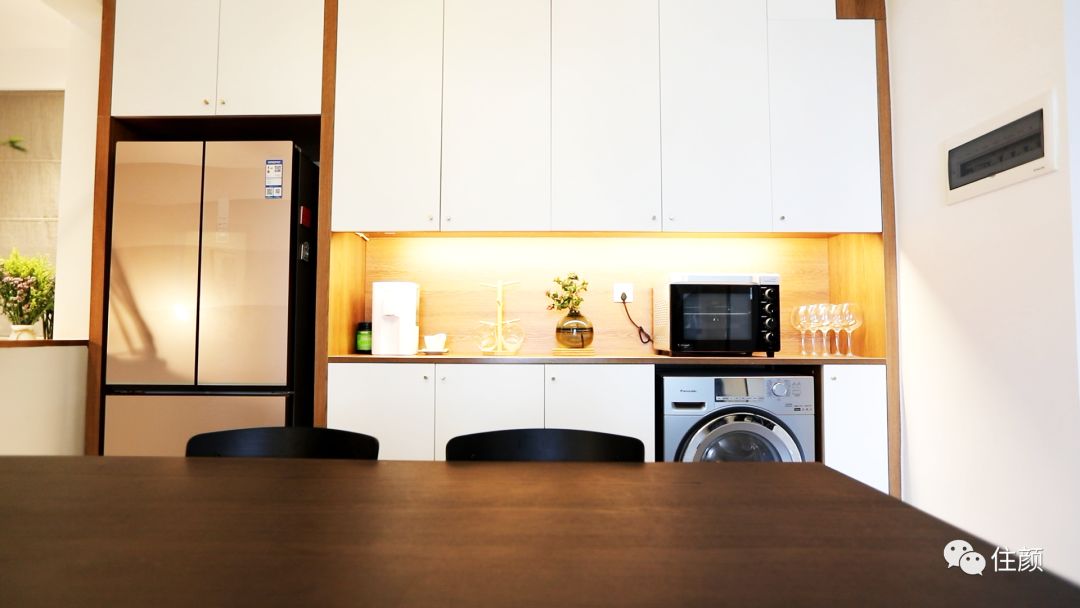 同时定制了冰箱槽和洗衣机槽,把家里最占地方的两大件家电也「收纳」进去,就算是 80㎡两室一厅,「节约每一寸空间」这件事也是要随时记在心上呀