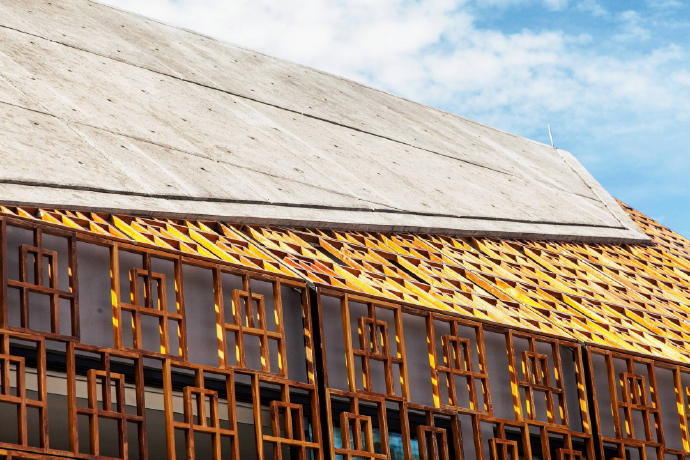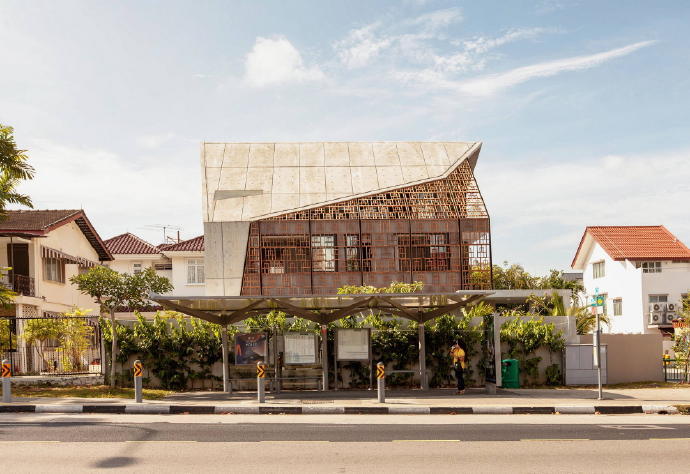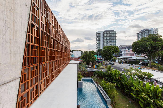 在建筑密集的城区,以素混凝土和轻灵的柚木结构,创造一处闲适的...