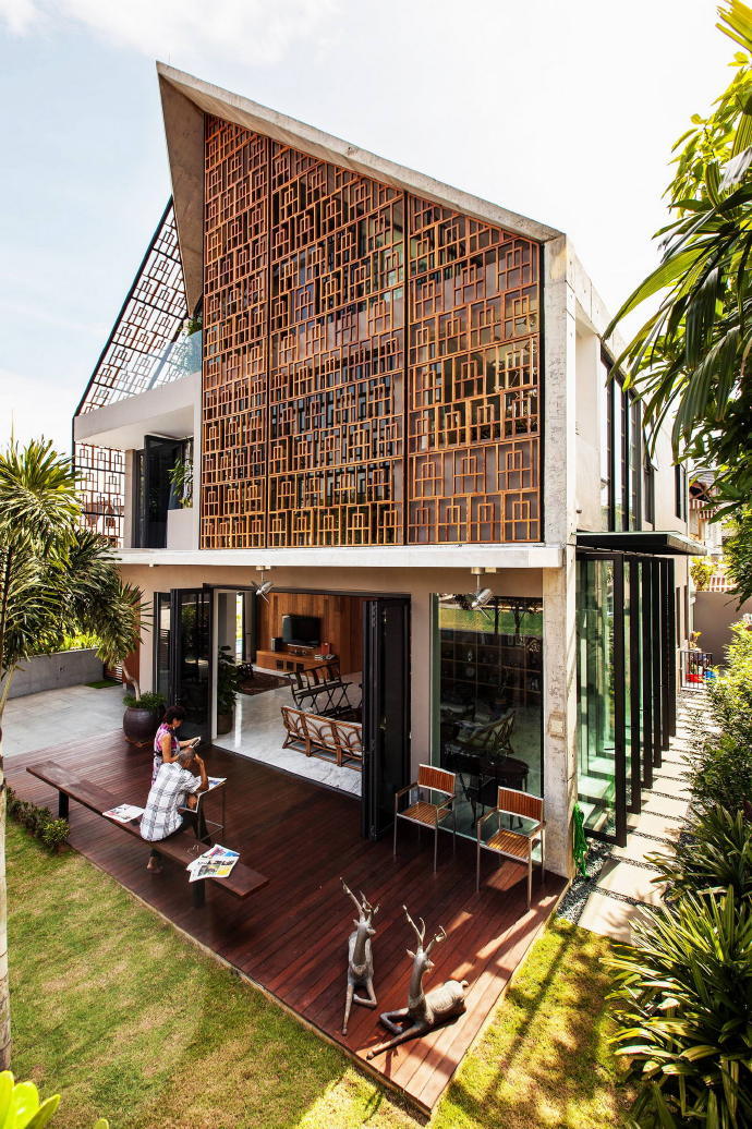 在建筑密集的城区,以素混凝土和轻灵的柚木结构,创造一处闲适的居住环境。
