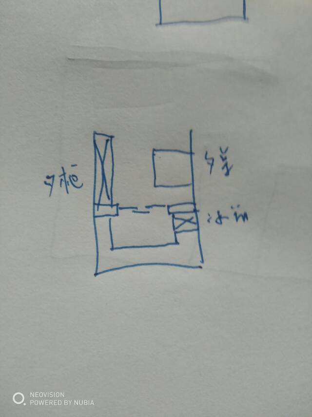 入户门进来左手可以做个鞋柜,餐厅餐桌靠一面的墙,另一面墙做餐边柜。餐厅保留餐桌的空间后,里面的就做移门当厨房。移门两边各留70厘米,这样正好是橱柜包括门套。冰箱放在厨房里面,靠近餐桌的位置。