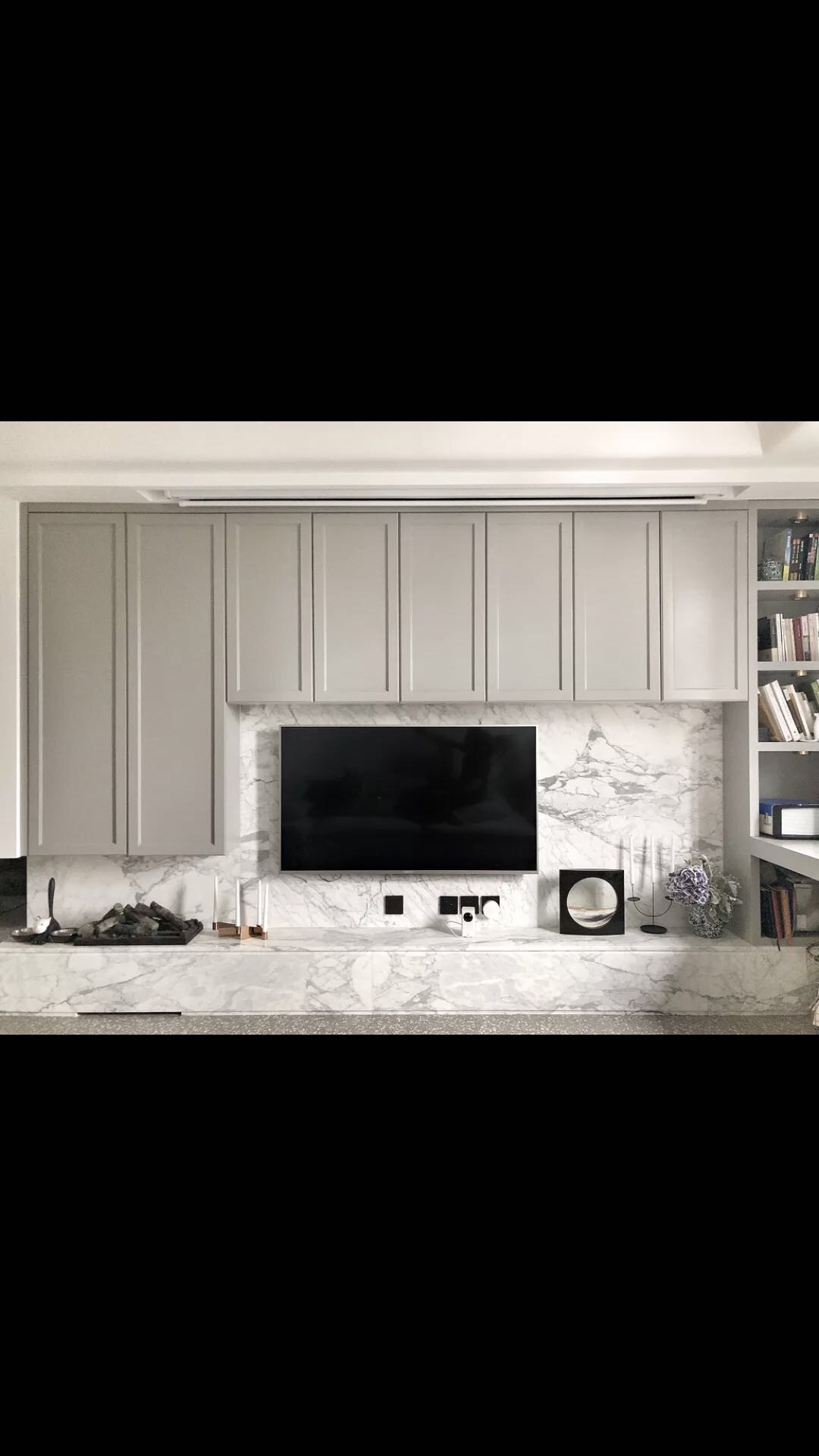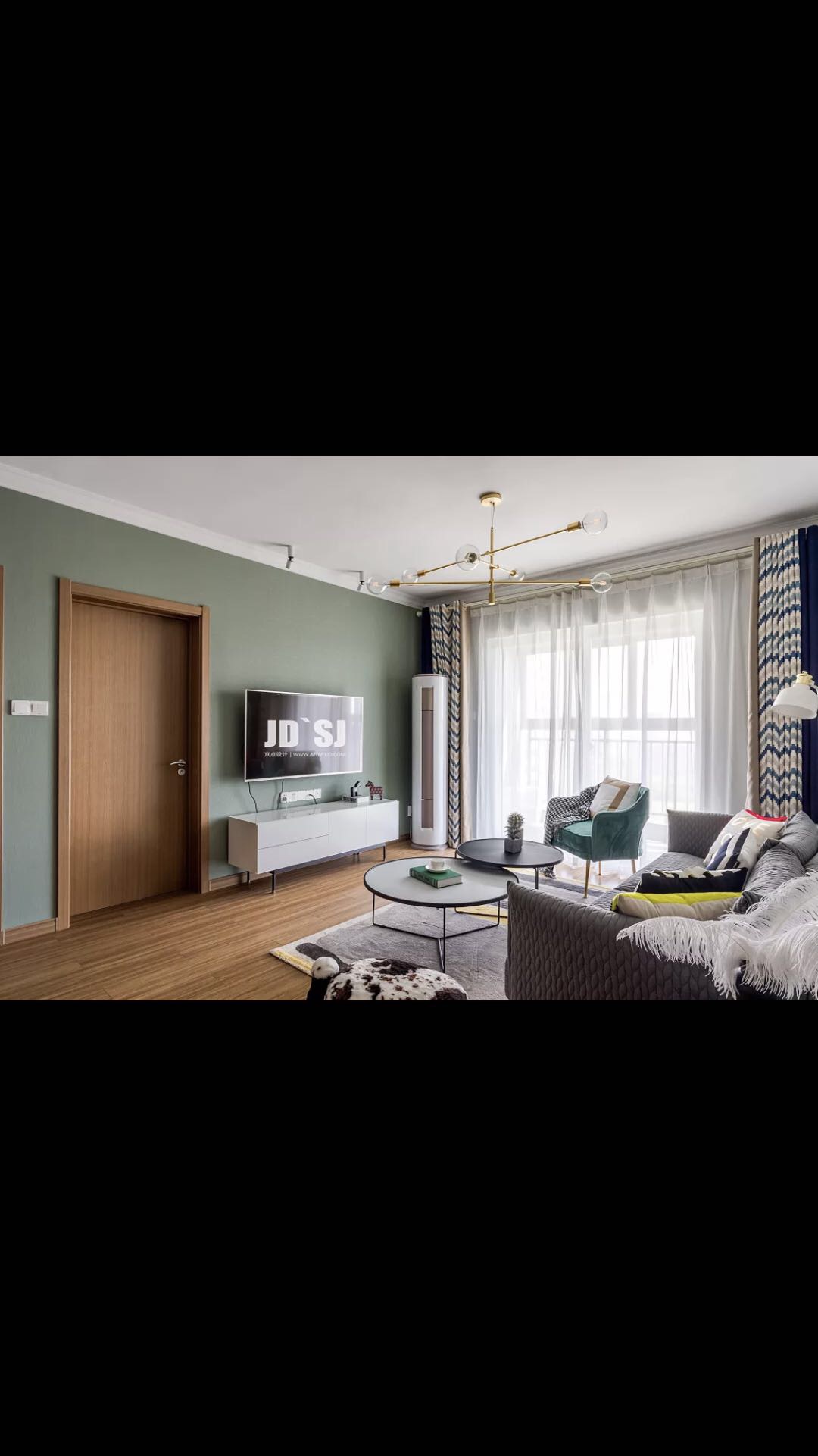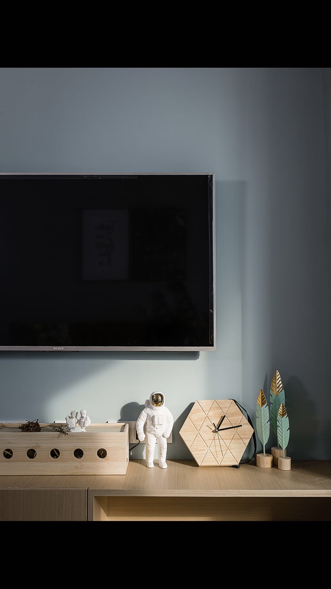 面积小,挂个电视机,也就空间不多了,建议直接用两种色彩进行几何或者分层的涂刷,简单而不单调,你可以试试