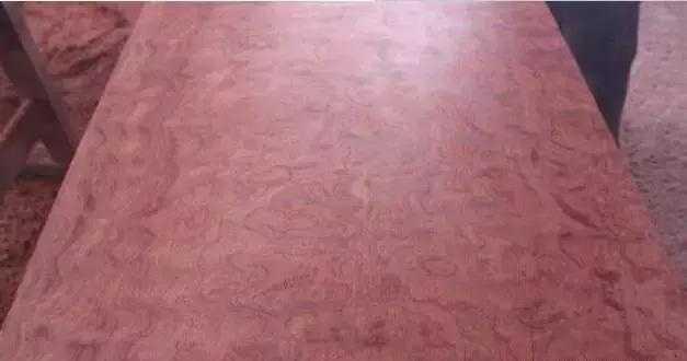 这是刚打磨好,没有喷漆过的大板,大家有注意表面的花纹吗?像水波一样有,树木的树心一般都是直线的,所以像这样的大板可谓百里挑一,价格是大板中的高富帅。这是一块"极品巴花大板"。▼