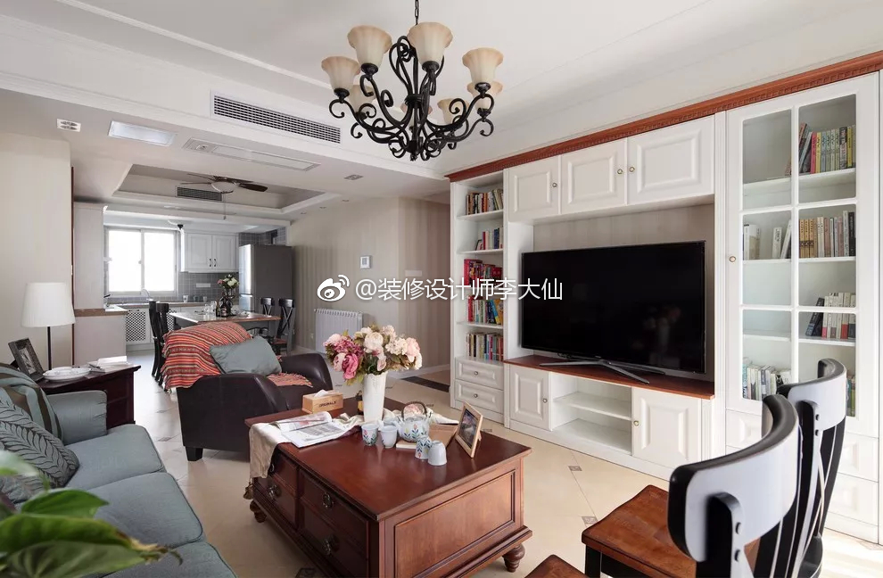 齐家网> 齐家装修论坛> 匠屋> 万千宠爱丨139㎡美式三居,浅色竖纹背景墙是我喜欢的样子!家...