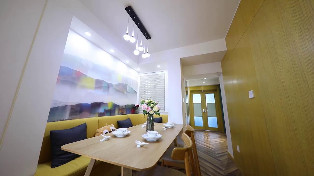 走进新家,首先看到的是一整面蓝色的柜子,白色的线型灯带拉伸空间的同时富有现代感。进门右手边通顶的鞋柜,采用灰镜面板,既能增加空间通透感,从视觉上放大空间,又比普通镜子看上去更柔和、更舒适。原本王静以为只能放一张餐桌的狭小门厅,设计师如今就做了两面柜子,这一整面蓝色柜子里又隐藏着什么玄机?沿着门厅向右走,一个温馨的多功能厅映入眼帘。 暖暖的新家