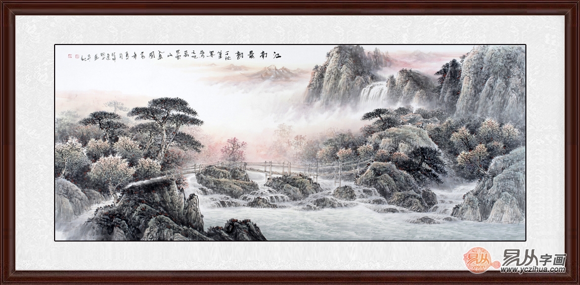 山水画应该是人们接触最多的书画题材,有人喜欢山水画的自然开阔,有人爱其清明水秀,有人中意它的大气端庄………因为喜爱,所以越来越多的人们选择山水画装饰家居,那么如此受人欢迎山水画挂在家中处合适吗?今天便跟随易从网一起来欣赏下那精致典雅的山水装饰画吧!经典山水装饰画推荐一、江南风韵山水秀色江南 徐坤连八尺横幅新品山水画《江南晨韵》作品来源:易从网
