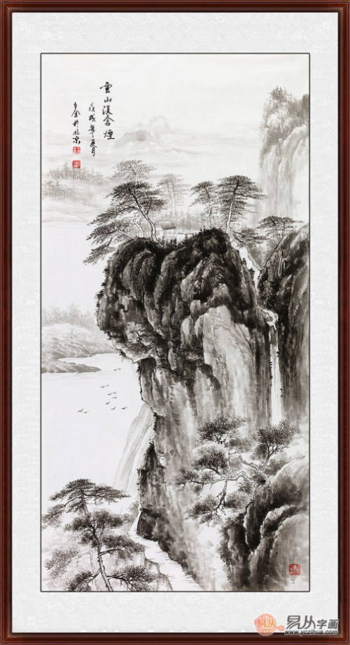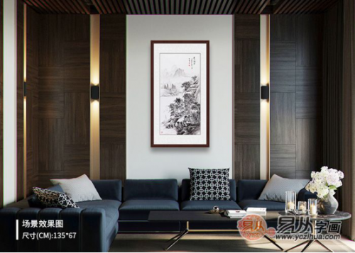 简约风格相较传统风格,抛却了大量花纹繁复的硬装造型和精致雍容的软装配饰,透亮的空间,更重视几何造型的使用,相较传统风格,空间感强,是它的优势。从这个角度说,传承千年的山水画艺术品,恰好适合这类风格的家居空间。简约山水装饰画欣赏:简淡素雅水墨山水画走廊挂画 画家王立全竖幅山水画作品《云山淡含烟》作品来源:易从网