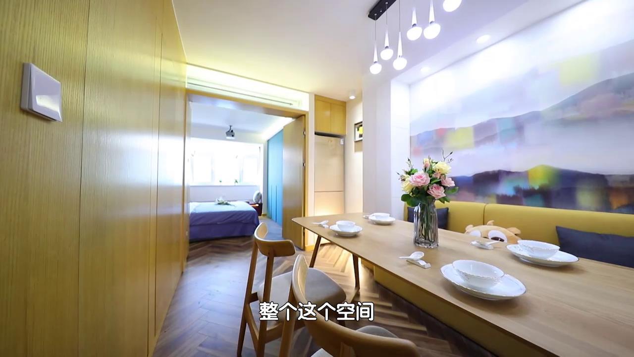 暖心设计三:书柜门增加私密性和通透性设计师将原来主卧门的位置做了一个可移动的书柜门,一方面增加了主卧的私密性,另一方面不影响空气对流,而这个书柜门的巧妙设计更是别出心裁。书柜门可以360度打开,让主卧和多功能厅形成一个完整大空间。 暖暖的新家