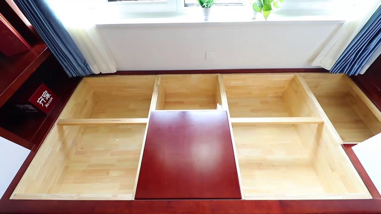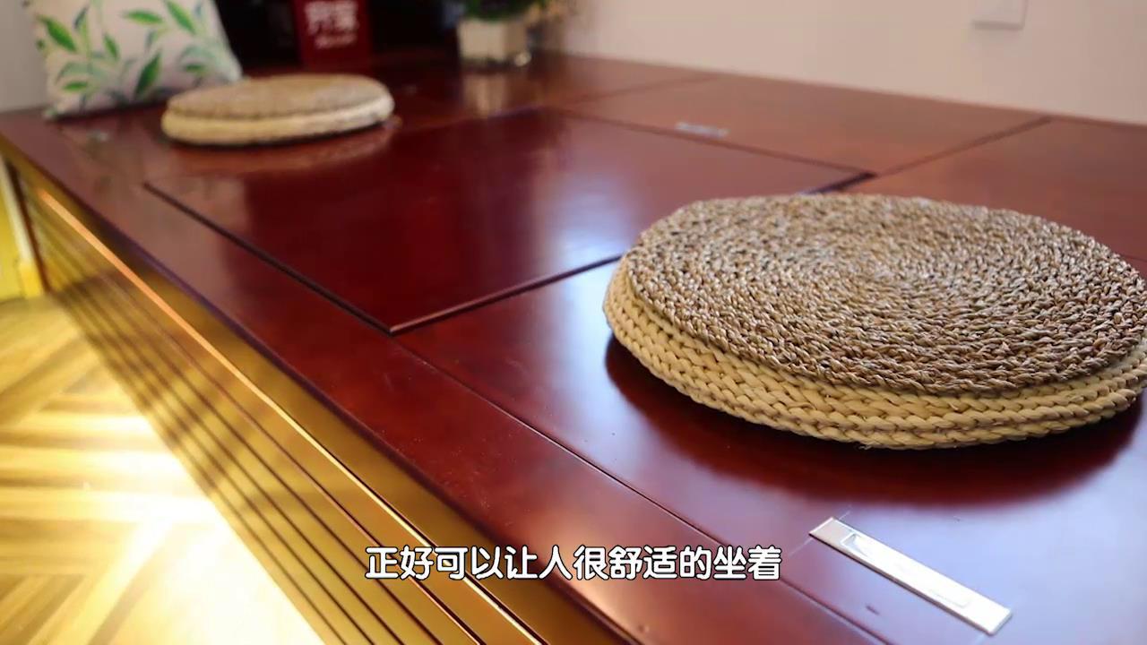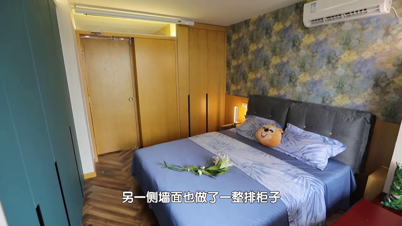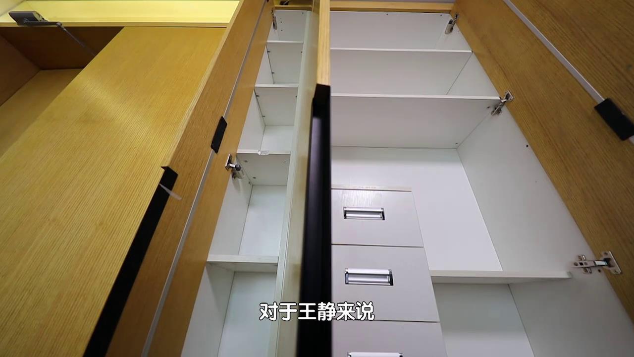 设计师在客厅和主卧之间新加了一小段隔断墙,给了冰箱一个最佳的安身之所,而它的另一侧则利用其宽度做了一整面墙的蓝色柜子。另一侧墙面也做了一整排柜子,里面详细的功能分区,对于王静来说更加方便她分类和打理衣物。算了一下,王静家的柜子总共有30个,而在150平米的家里我们曾经也计算了一下有21个,新家整整比原先的大房子还多了9个储物空间。阳台榻榻米的高度正好可以让人很舒适的坐着,耿先生可以在上面喝茶看书,王静可以在上面做瑜伽。里面同样具有大量的储物空间。 暖暖的新家