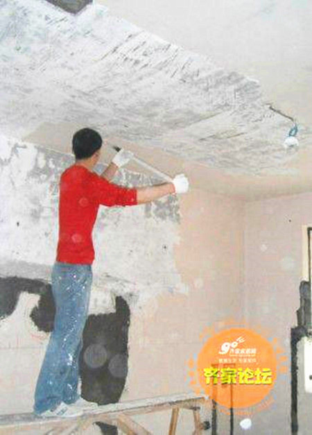 齐家网> 齐家装修论坛> 装修> 铲顶面是很累人的活计,看到杨师傅和邵师傅各自都换了几次刀片。