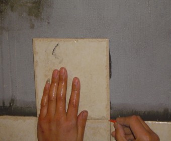 在水泥初凝期得调整好砖的平整度,用插片固定不平的瓷砖,使砖缝横平竖直。师傅说我家的十字卡太厚了,他们用的是一种小纸片样的东西,每块瓷砖贴完都会固定上去,然后等差不多干了的时候才拿掉。