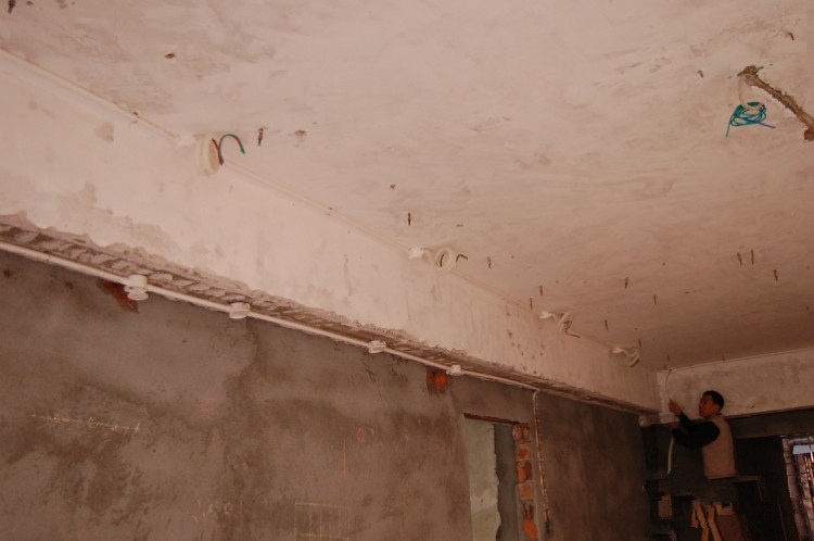 客厅天花的灯槽也完成了,看看效果,分为四组灯组,绕客厅一圈,...