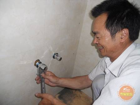 昨天家里有4批人安装。五金件:水电工,马桶:法恩莎工人,浴室柜:工长+水电工,移门:欧福来父子。又是忙碌的一天,只拍了几张照片。工长乐呵呵的装浴室柜的角阀。