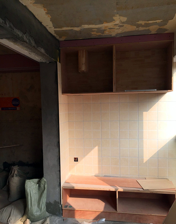 阳台一边的吊柜和底柜,底柜上到时候加个大理石,冬天坐着晒晒太阳,想想就很小资有木有!