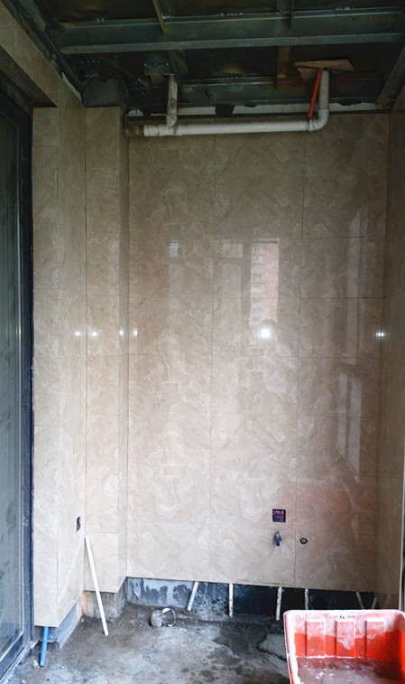 泥工师傅因为有一些事情,所以我们工地上暂停了几天,后天要重新开工了。这是走之前贴的一楼的阳台的墙砖。