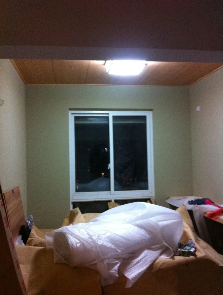 墙纸和顶纸都是网上买的。贴墙纸的师傅说纸很好,是日本的高温纸。顶上的纸木纹效果很好哦,很多工人都以为我顶上是木头。