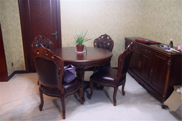 所有客厅、餐厅的家具都是美国红橡木。餐厅。