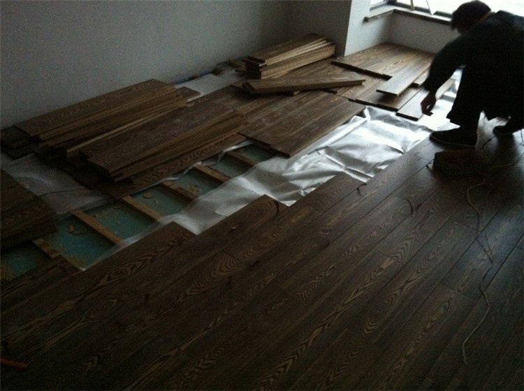 原谅我这个懒人吧! 近拍地板,师傅还在赶时间。