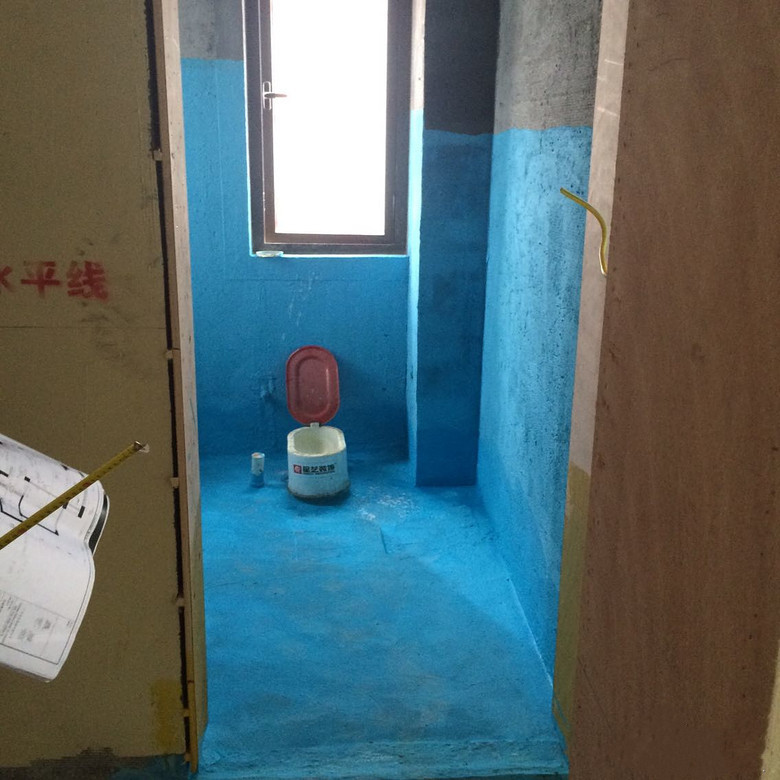 卫生间防水,墙面和地面有了自己的颜色。