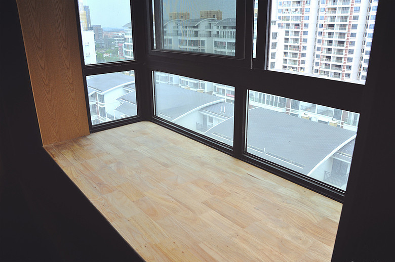 飘窗床台,已经铺设了橡木实木板。看上去还是相当不错的。