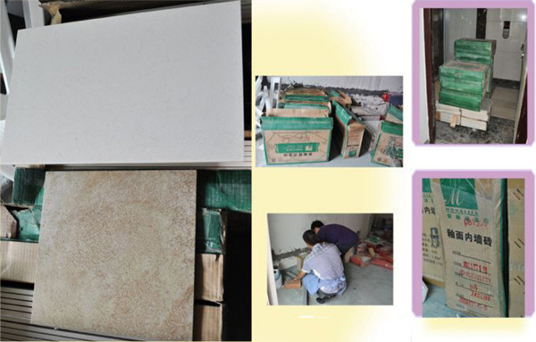 验收看看包装很规范,墙砖是浅色的,地砖还是加工砖,感觉也不算太难看吧~~