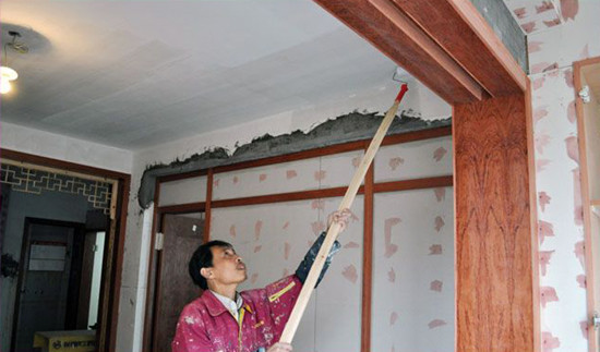 齐家网> 齐家装修论坛> 装修> 孙师傅的姐夫周师傅在涂刷客厅墙面。