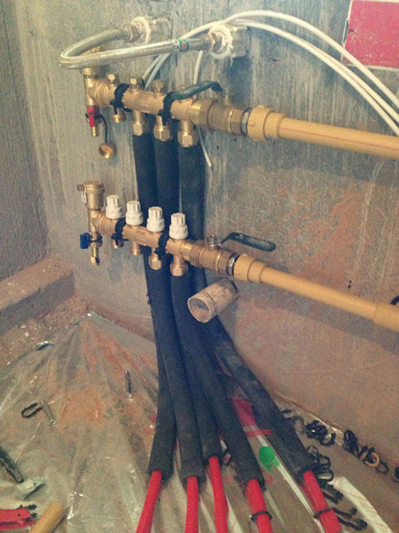 分水器来了!这张是半路拍的,应该是客餐厅2路,主卧、次卧各一...