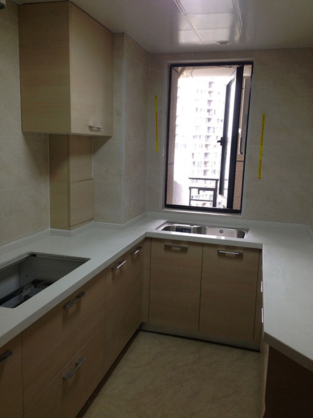 志邦橱柜安装结束,两个很年轻的师傅,说话很温和,有问必答。直接上图吧,厨房全貌。
