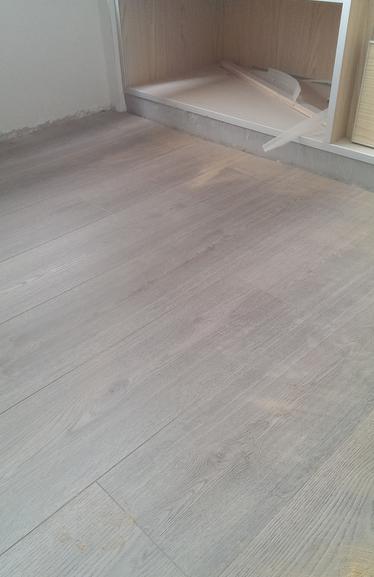 最后,灰色原木纹,手摸上去有凹凸感。安装师傅还说,这个地板很硬朗,一般小孩子的玩具都不会划伤它,但,它比较怕水。